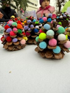 Für die äußere Erwärmung sorgten ein Essensstand mit Kuchen, Hot Dogs und Punsch – letzterer natürlich alkoholfrei, aber trotzdem stark genug, um das Gefühl zu vermitteln, dass einem langsam wieder die Finger auftauen. Besonders umlagert waren die Verkaufsstände mit den selbstgebastelten Schätzen der Kinder. Von glitzernden Sternen bis zu kreativ bemalten Kerzenhaltern war alles dabei, was ein echtes Familien-Weihnachtsdeko-Upgrade ermöglicht.